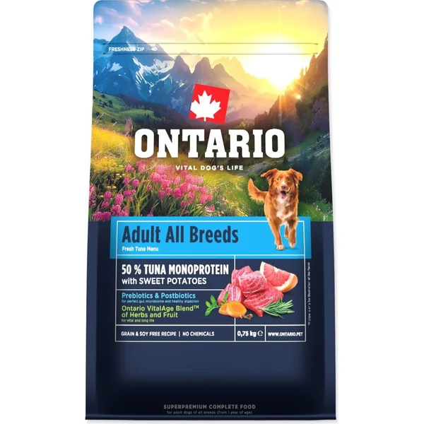 Nourriture Ontario Puppy & Junior All Breeds Monoprotéine Thon & Patates Douces 0,75kg