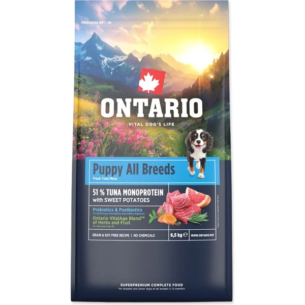 Nourriture Ontario Puppy Toutes Races Monoprotéine Thon & Patates Douces 6,5kg