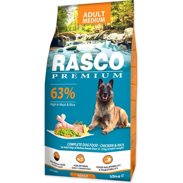 Nourriture Rasco Premium Adult Medium poulet avec riz 15kg