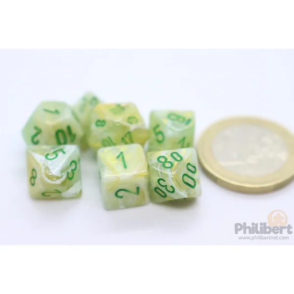 Set de 7 Mini Dés JDR Chessex : Marble Green / Dark Green