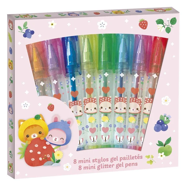 8 MINI STYLOS GEL PAILLETES
