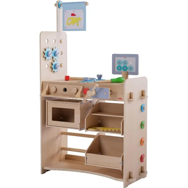Haba Creative Play 3-en-1 Cuisine en bois, magasin et atelier