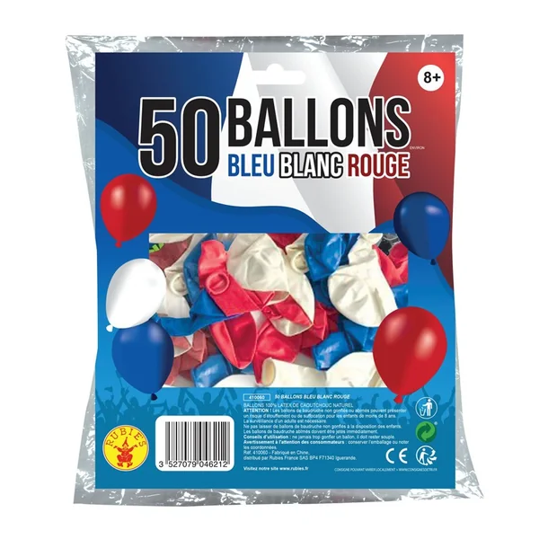 Sachet de 50 ballons Bleu/Blanc/Rouge – Rubies