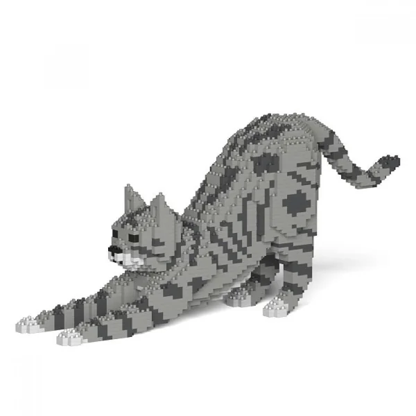 JEKCA BLOCS DE CONSTRUCTION -CHAT TIGRE GRIS CLAIR QUI S’ETIRE