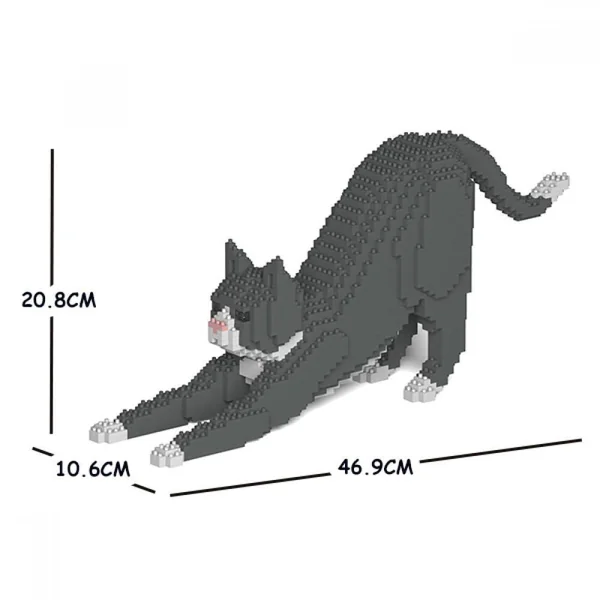 JEKCA BLOCS DE CONSTRUCTION -CHAT TUXEDO GRIS QUI S’ETIRE
