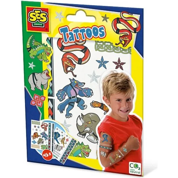 Tatouages pour enfants – guerriers animaux, 45 pcs