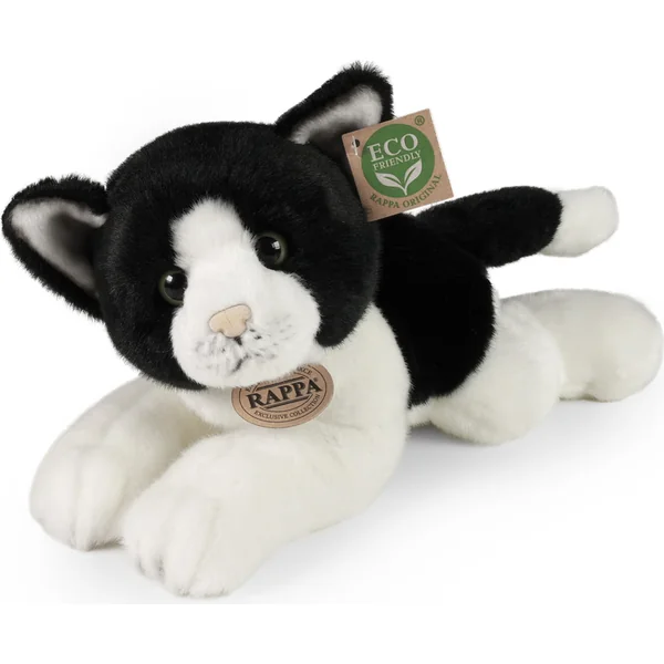 Chat en peluche blanc et noir couché 30 cm ECO-FRIENDLY