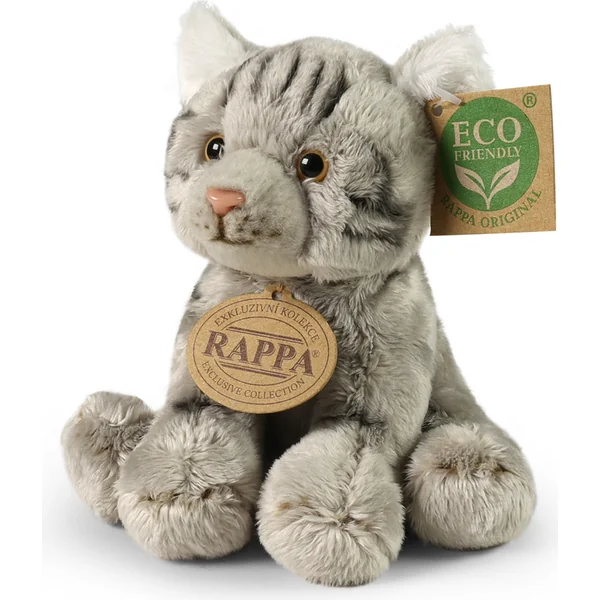 Chat en peluche gris assis 14 cm ÉCOLOGIQUE