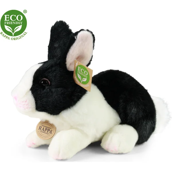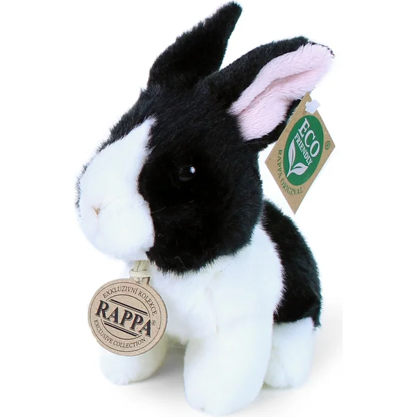 Lapin en peluche blanc-noir assis 16 cm ECO-FRIENDLY