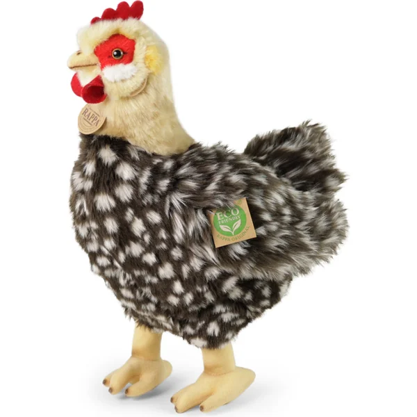 Poule en peluche tachetée debout 33 cm avec œuf ECO-FRIENDLY
