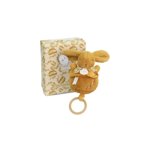 Lapin DOUDOU : boite à musique lapin Jaune moutarde 20 cm – Doudou et compagnie