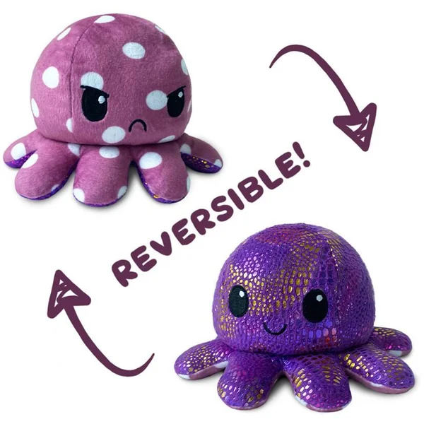 PELUCHE OCTOPUS POULPY PIEUVRE MIGNONNE HUMEUR REVERSIBLE DOUBLE FACE -A POIS ET BRILLANT