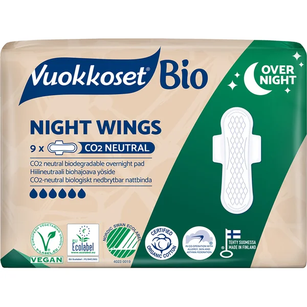 VUOKKOSET BIO Serviettes hygiéniques nuit avec ailes Night Wings (9 pcs)