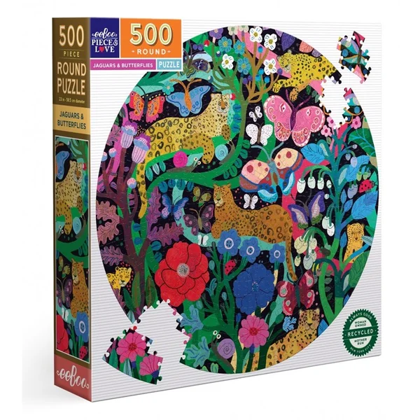 Puzzle 500 pcs rond Jaguars & Butterflies- Eeboo