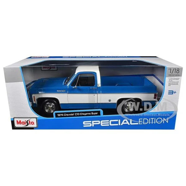 1/18 CHEVROLET C10 CHEYENNE SUPER 1974 – BLEUE ET BLANCHE