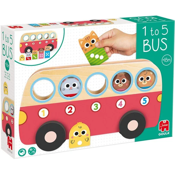 Ce jouet aide les enfants à apprendre à compter de 1 à 5. Il comprend 5 animaux en bois à placer dans le bus, avec un système d’autocorrection qui favorise l’autonomie.