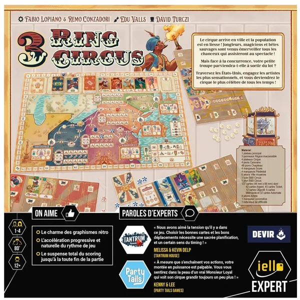 Accessible tout en étant riche en possibilités tactiques, il saura séduire les joueurs en quête de stratégie et de tension. Entre l’engagement des artistes, l’organisation des spectacles et la course à la renommée, chaque partie offre son lot de décisions cruciales et de rebondissements. Que vous soyez un passionné de jeux de gestion ou simplement à la recherche d’une nouvelle expérience ludique, 3 Ring Circus vous promet des représentations inoubliables.