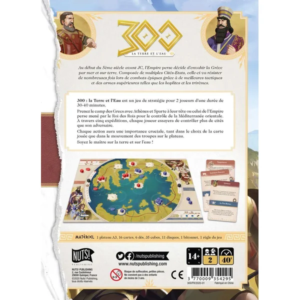 300 : la terre et l’eau est un wargame pour deux joueurs. Un joueur contrôle les Grecs, rassemblés autour des Athéniens, et l’autre contrôle les Perses, luttant pour l’hégémonie de la Méditerranée orientale. À travers les cinq expéditions, chaque joueur lutte pour contrôler plus de villes que son adversaire.