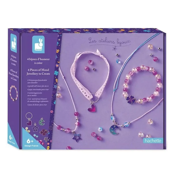 Avec ce kit de création de bijoux, les enfants réalisent 4 bijoux d’humeur, dès l’âge de 6 ans. Leur particularité ? Leur breloque change de couleur au contact de la peau et de la chaleur ! Ce qui fait de ce kit créatif une chouette activité pour développer sa patience et sa dextérité, mais aussi une bonne occasion d’exprimer son style et ses émotions au travers de ses créations. En plus, porter ses propres bijoux faits mains aide à développer sa confiance en soi et à affirmer sa personnalité !