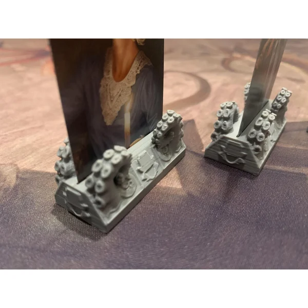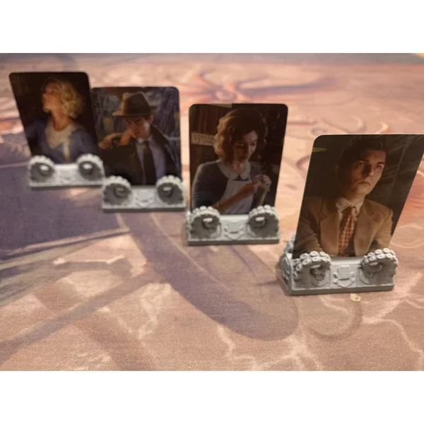 - 4 standees d’investigateurs imprimés en 3D pour le jeu de cartes Horreur à Arkham JCE en gris.