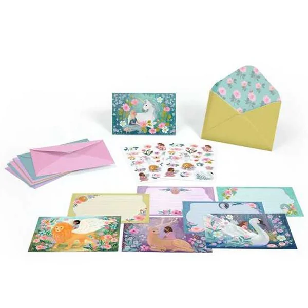 Une pochette festive pour des invitations pleines de magie ! Sur le thème des animaux fantastiques, cet ensemble comprend 8 cartes d’invitation illustrées, 8 enveloppes assorties et 2 planches de stickers pour personnaliser chaque message. Chaque élément est sublimé par un effet métallisé et une impression mate, apportant une touche d’élégance et d’originalité. Un papier de qualité garantit un rendu soigné pour des invitations inoubliables.