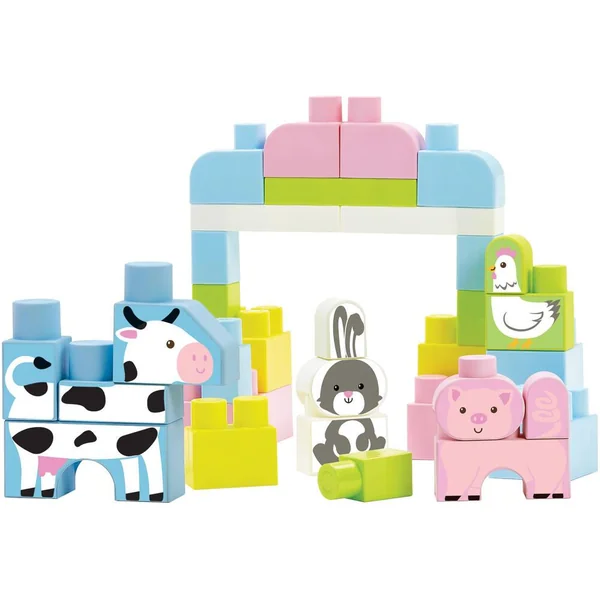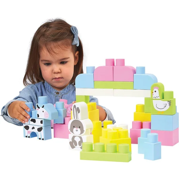 Un baril rempli de 50 briques pour construire 4 animaux et leur univers. Le couvercle sert de base de jeu.