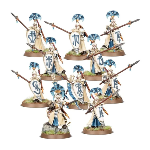 Les Auralan Wardens forment la première ligne de toute force de Lumineth Realm-lords, et érigent un mur de piques quasi impénétrable pour mieux repousser les charges adverses et dominer les objectifs. Capables de se rendre encore plus dangereux au moyen de sorts, ils se révèlent incontournables quelle que soit l’armée.