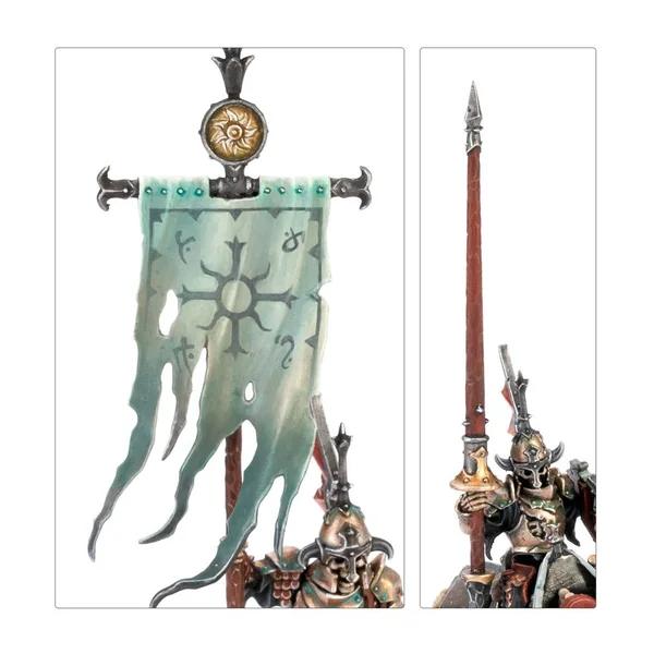 Ce kit contient des éléments pour assembler un champion, un musicien et un porte-étendard optionnels. Les heaumes et boucliers sont interchangeables entre les figurines, ce qui vous permet de personnaliser facilement votre unité.