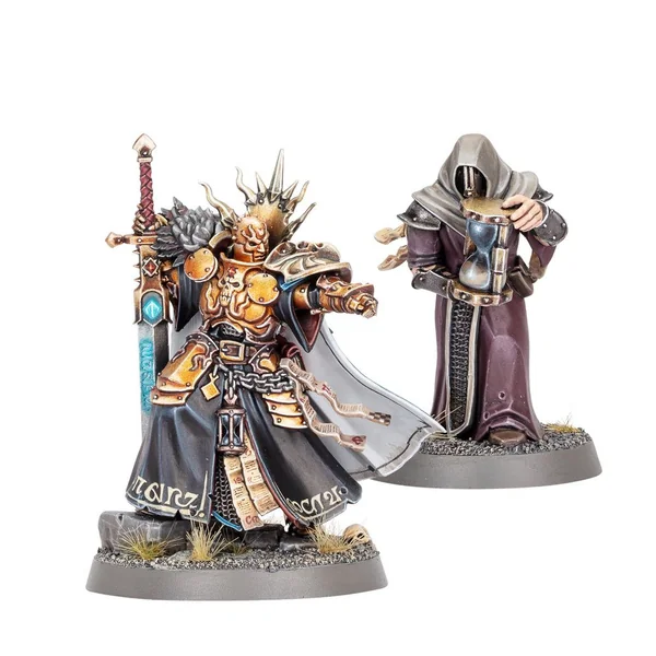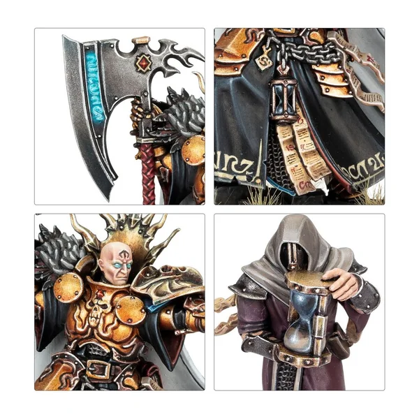 Ce kit en plastique permet d’assembler un Seigneur-Terminos, un bourreau des chambres de la Perdition. Sa puissante lame exécute à la fois les ennemis du Dieu-Roi et certains de ses alliés quand le besoin s’en fait sentir. Cette figurine peut être personnalisée à l’aide de deux têtes différentes et, au choix, d’une hache à lame énorme ou d’une épée large à la pointe arrondie, toutes deux des Lames Terminos, qui sont le symbole de son office. Un Mémorien l’accompagne au combat.