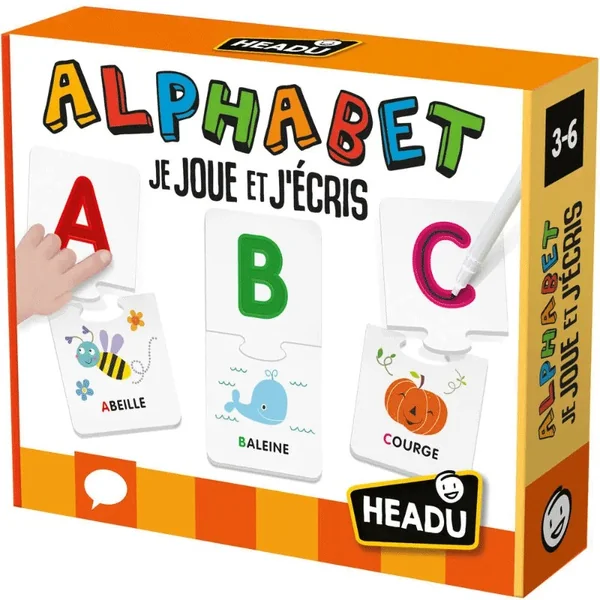 Apprends l’alphabet, prononce les mots et trace les initiales avec le feutre effaçable. Avec la nouvelle méthode des lettres en creux, apprendre à écrire c’est vraiment amusant !