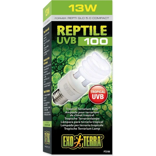 La lampe Exo Terra Reptile UVB100 émet un rayonnement UVB à un niveau optimal, similaire à celui des environnements ombragés des forêts tropicales et d’autres localités tropicales.