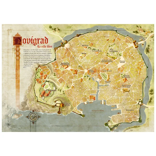 Avec ses pages qui imitent l’apparence du parchemin, ses lettrines et sa graphie gothique, cet atlas nous transporte directement au cœur de l’univers imaginé par Andrzej Sapkowski et permet de redécouvrir l’ensemble des lieux emblématiques traversés par les personnages sur le Continent.