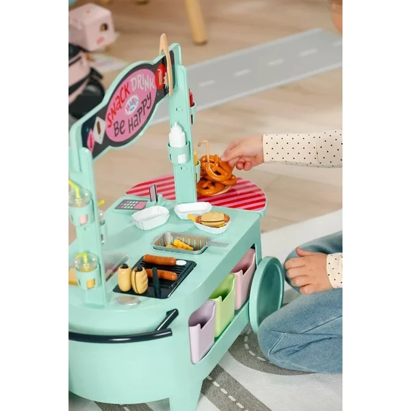 Partez avec BABY born pour une aventure pleine de saveurs ! Ce chariot coloré de snacks offre tout ce dont la poupée a besoin pour préparer les meilleures friandises. Les enfants peuvent vendre des glaces, des boissons et d’autres délices directement depuis le chariot.