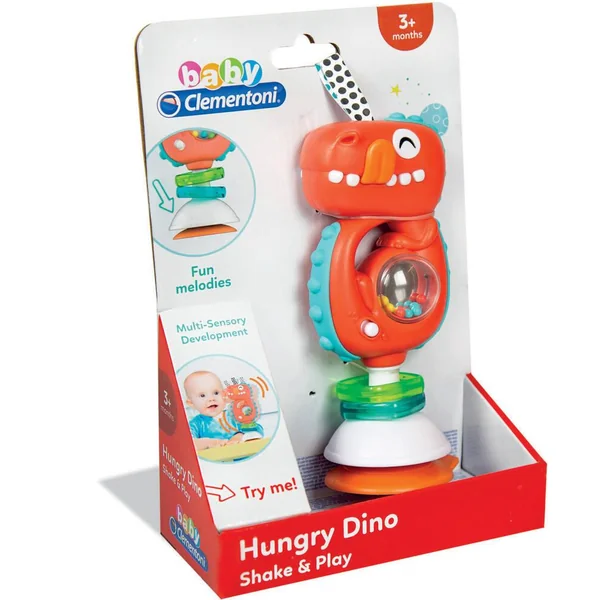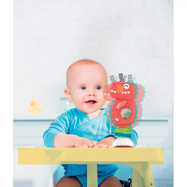 Un amusant hochet en forme de dinosaure pour divertir l’enfant à l’heure du repas. En secouant le hochet, l’enfant active des mélodies et des effets sonores amusants, tandis que les billes colorées et les breloques attireront son attention et stimuleront sa perception tactile. Avec une ventouse pratique pour maintenir le hochet stable sur une table ou une chaise haute. Piles de démonstration fournies.