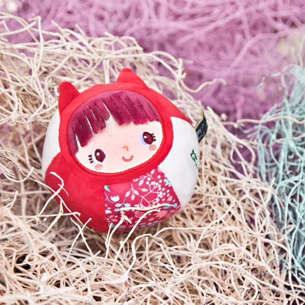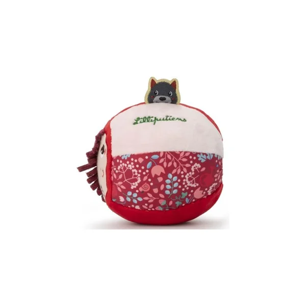Cette balle de Petit Chaperon Rouge, avec ses couleurs vives et ses détails surprenants, est facile à saisir pour les petites mains et elle émet des sons de grelot et de froissement lorsqu’elle roule.
