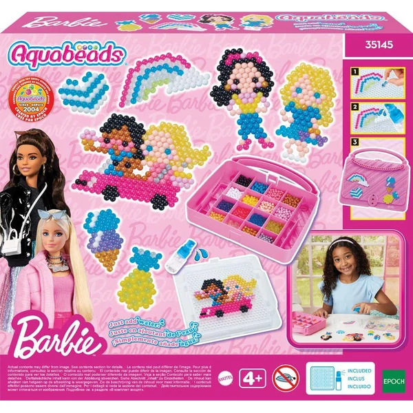 Découvre le Barbie Craft Carry Case, la mallette créative 100 % glamour de l’univers Barbie, à emporter partout avec toi ! Crée Barbie et ses accessoires iconiques : un rouge à lèvres, un parfum, un talon ou un cocktail… choisis le style que tu veux lui donner ! Assemble les perles, vaporise un peu d’eau, laisse sécher… et c’est prêt ! Tes créations tiennent toutes seules, comme par magie. Personnalise ta mallette avec tes plus belles créations pour la rendre unique, à ton image. Et grâce à sa poignée, emmène ton coffret Barbie partout : chez tes amis, en vacances ou le temps d’un week-end ! Un coffret complet pour des heures de création et d’imagination, qui t’ouvre les portes de l’univers glamour de Barbie.