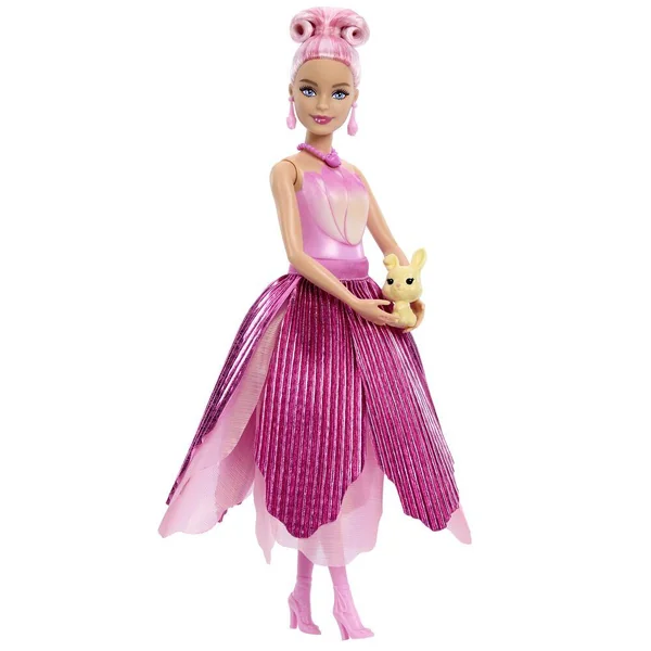 Barbie s’associe à la tulipe rose pour fêter le printemps ! Des surprises sont cachées à l’intérieur de la fleur. Poupée et accessoires sont inclus.
