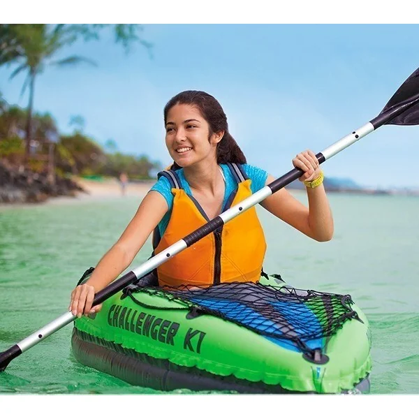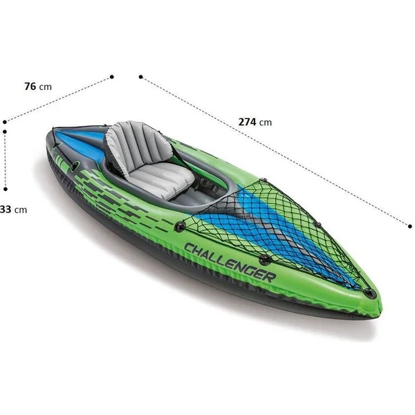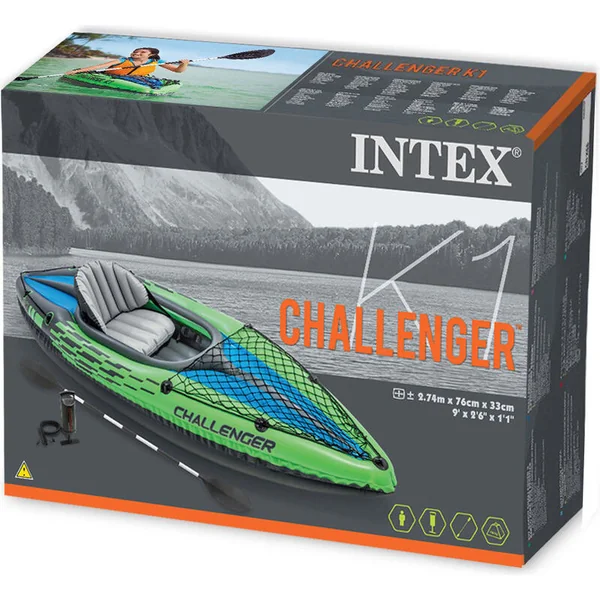 - Le kayak Challenger K1 est fabriqué en vinyle SUPER-TOUGH résistant, conçu pour une longue durée de vie. La graphique réfléchissante permet aux autres de vous voir facilement. La cabine est conçue pour le confort. Elle dispose donc d’un siège et d’un dossier gonflables. Amenez le plaisir et l’aventure sur l’eau avec ce kayak Challenger K1. Il peut être utilisé sur des lacs et des rivières modérées.