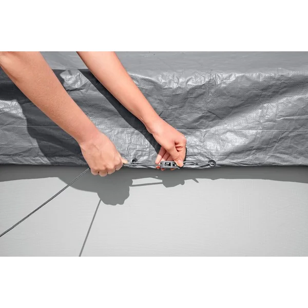 Oubliez les constructions compliquées. Grâce aux câbles de fixation, vous pouvez étendre la couverture sur la piscine en un instant pour qu’elle soit résistante au vent. Ainsi, même un fort vent d’automne n’a aucune chance d’introduire des salissures et des feuilles dans votre piscine.