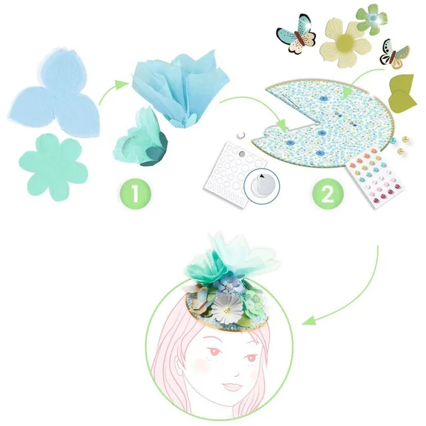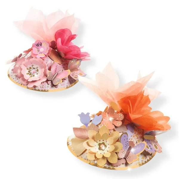 Un kit créatif pour réaliser 3 ravissants chapeaux à personnaliser. L’enfant les décore avec des fleurs en papier de soie et des éléments végétaux à coller grâce aux stickers en mousse épaisse, qui apportent du volume aux compositions. Une fois les chapeaux assemblés, il ajoute quelques perles autocollantes pour parfaire sa création. Ces trois modèles aux coloris assortis sont parfaits pour les fêtes et offrent une activité agréable avant d’être fièrement portés.