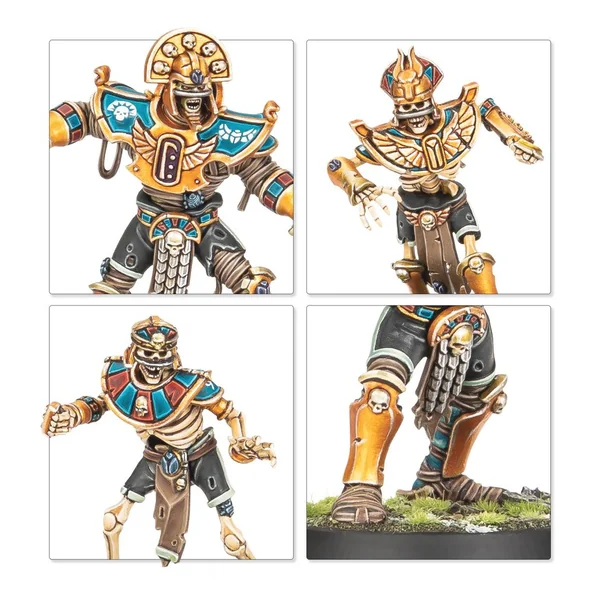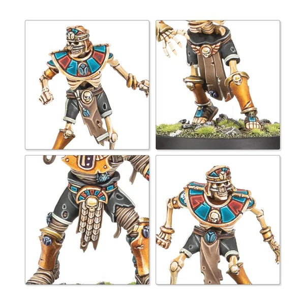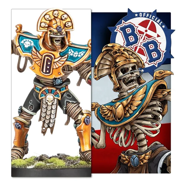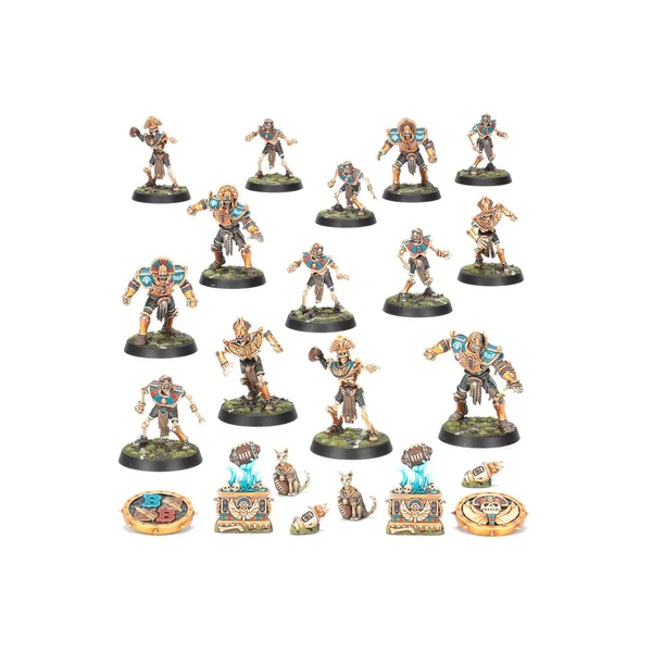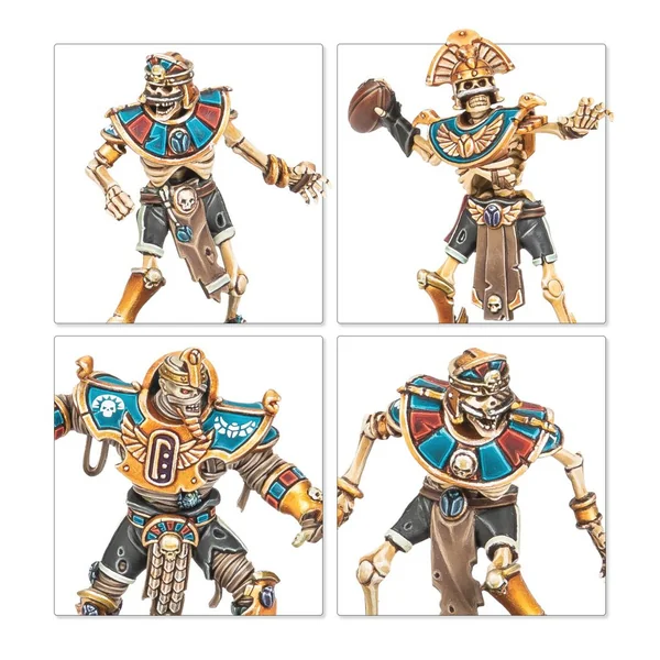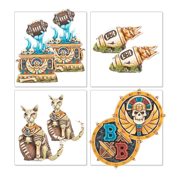 - 14 joueurs Rois des Tombes en plastique de couleur os: 2x Blitzers, 2x Lanceurs, 4x Gardiens des Tombes et 6x Trois-quarts Squelettes, ainsi que des pions, des marqueurs de Relance, et des ballons supplémentaires