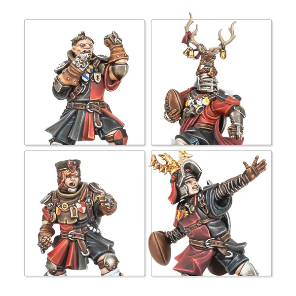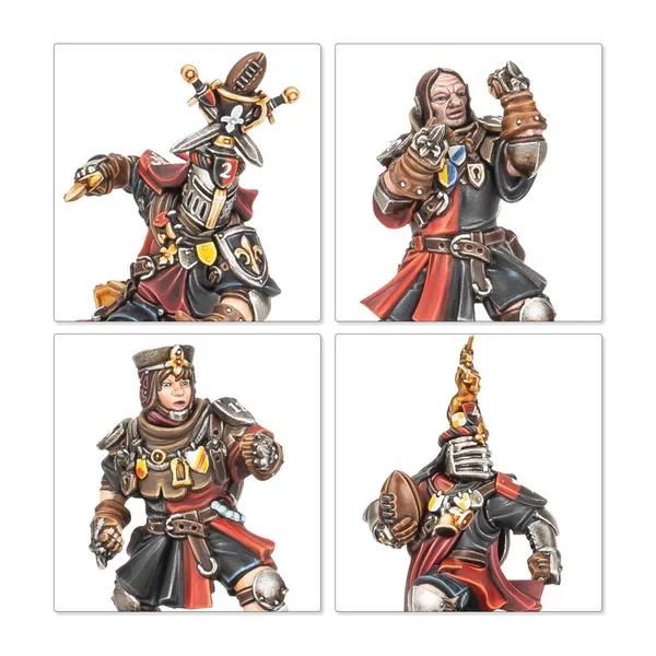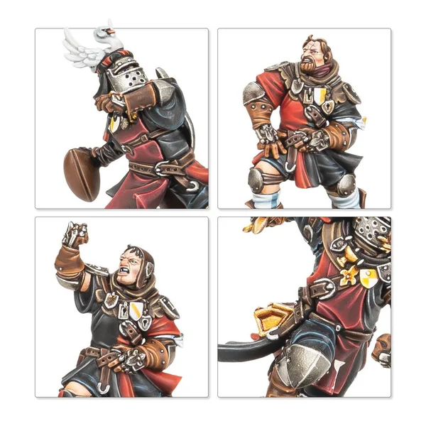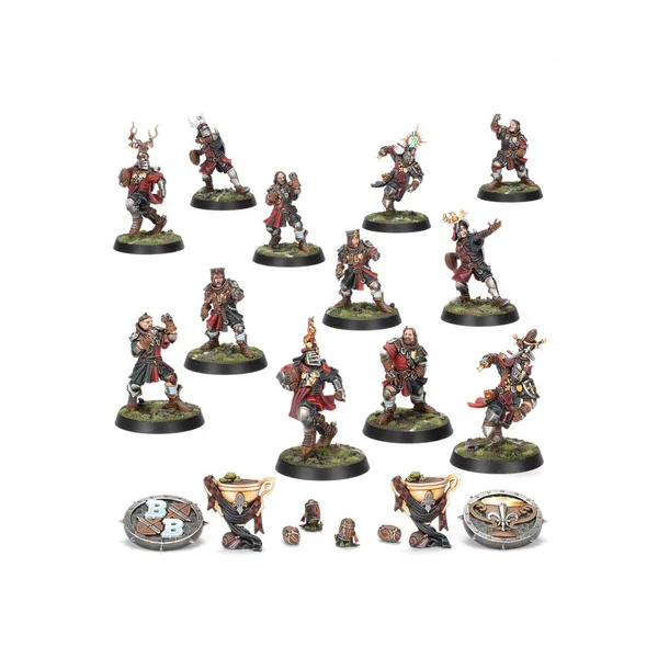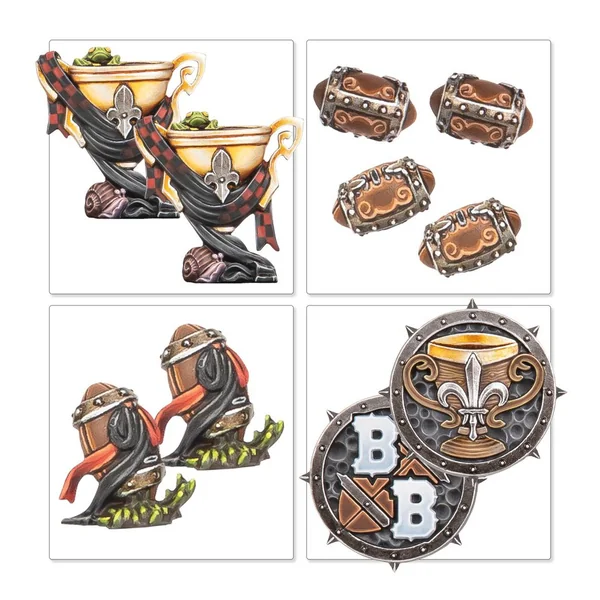 - 12 joueurs Bretonniens en plastique rouge: 6x Trois-quarts Écuyers, 2x Receveurs Chevaliers, 2x Lanceurs Chevaliers et 2x Blitzers Chevaliers du Graal, ainsi que des pions, des marqueurs de Relance, et des ballons supplémentaires