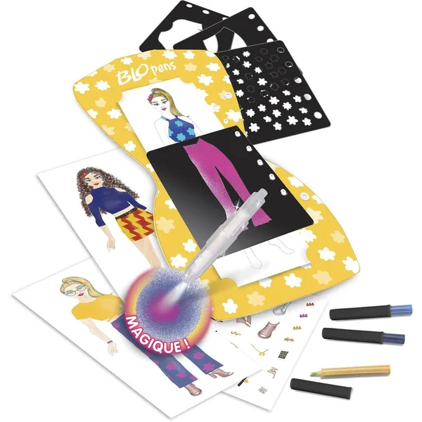 Deviens un vrai styliste ! Choisis ta tenue, ajoute des motifs grâce aux Blopens magiques et accessoirise le tout avec des autocollants ! Dès 7 ans.