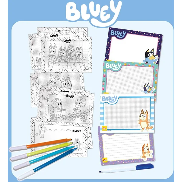 Apprends à dessiner Bluey et les autres personnages de la célèbre série télévisée avec ce kit créatif amusant ! Ce sera super facile grâce au cahier d’exercices, qui contient de nombreux dessins organisés selon une difficulté progressive et aux 4 planches.