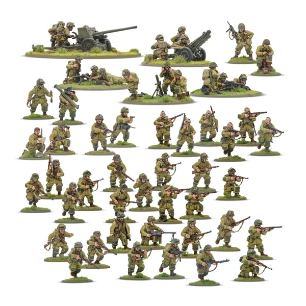 La boîte Currahee ! US Airborne (D-Day) Starter Army contient 36 figurines d’infanterie US Airborne (D-Day) en plastique dont :