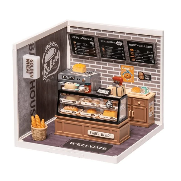 Golden Wheat Bakery DW005 est une maison miniature en plastique DIY rom Rolife Super Creator – Super Store Series. Cette adorable boulangerie propose du pain et des desserts frais et savoureux que vous adorerez, en particulier nos bagels signature, tartes aux baies et gâteau blanc, qui sont populaires auprès de nos clients. Vous ne voulez pas le manquer ! Amusez-vous à construire et à jouer avec cette incroyable maison de poupée miniature de boulangerie !