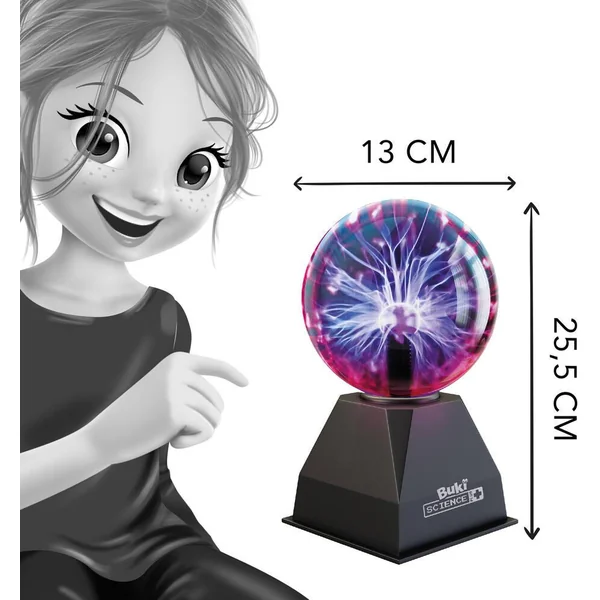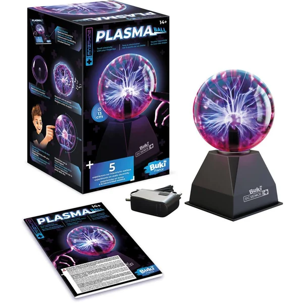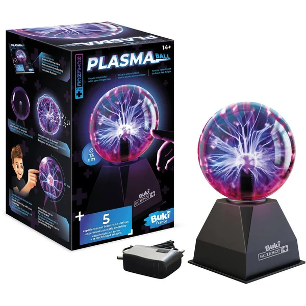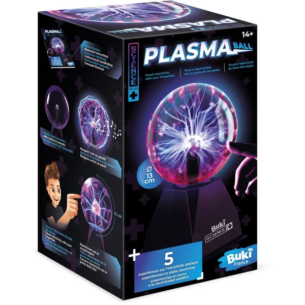 Une boule plasma de 13 cm de diamètre, idéale pour décorer la chambre. Elle réagit au toucher et crée des éclairs d’électricité sans danger. Réagit aussi aux sons ! Inclus : 5 expériences étonnantes sur l’électricité statique. Notice illustrée en couleurs. Elle réagit aussi aux sons. Effets lumineux. Prise secteur incluse.