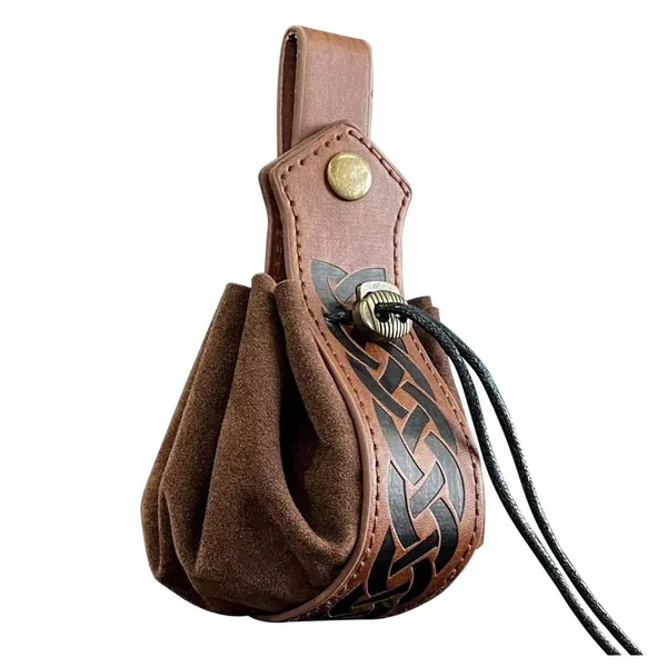 Bourse à dés en cuir véritable, ornée de gravure.