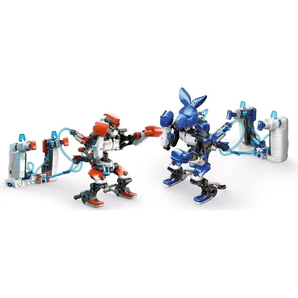 Ce modèle hydraulique de boxeurs combattants permet aux enfants d’explorer les principes de l’hydraulique tout en s’amusant lors d’un combat de boxe. Avec une hauteur de 15 cm, les robots combattants sont suffisamment grands pour profiter de combats réalistes. Les robots ont un tronc et des bras mobiles, ce qui leur permet d’effectuer des manœuvres d’esquive et de porter des coups efficaces à leur adversaire.