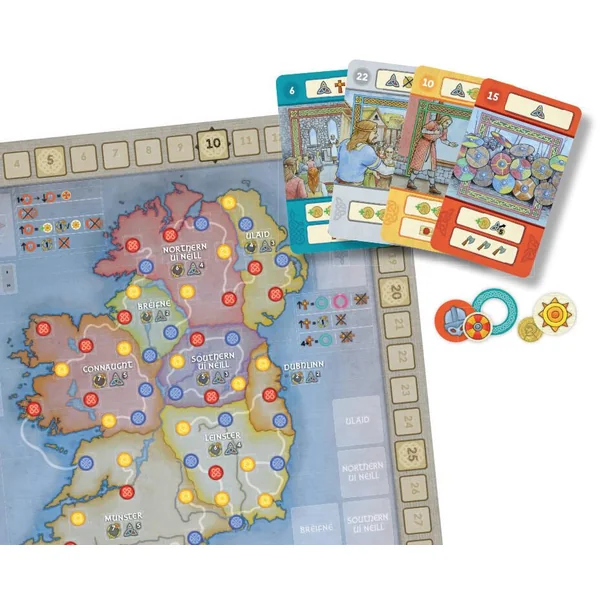Dans Brian Boru, les joueurs s’efforceront d’unir l’Irlande sous leur domaine, en assurant le contrôle par la force, la ruse et le mariage. Unissez vos forces pour repousser les envahisseurs vikings, construisez des monastères pour étendre votre influence et rassemblez des soutiens dans les villes et villages du pays. Vous devrez naviguer dans un réseau d’alliances changeantes, déjouer vos ennemis pour devenir le grand roi de toute l’Irlande.